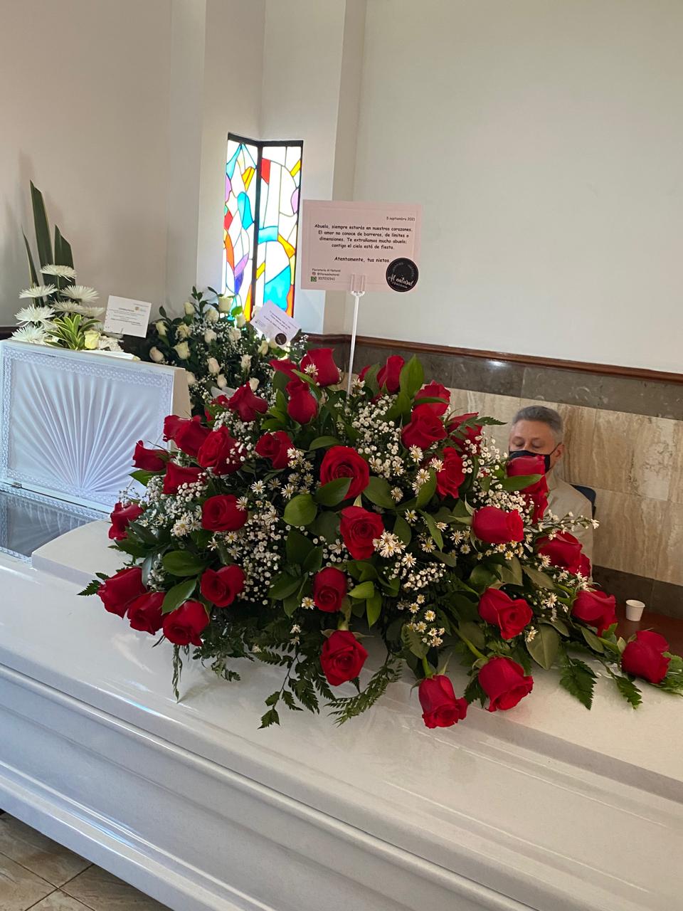Arreglo floral al natural fúnebre #19 arreglo floral funebre ,cubre cajas de rosas rojas